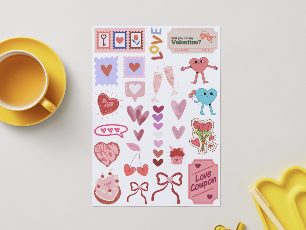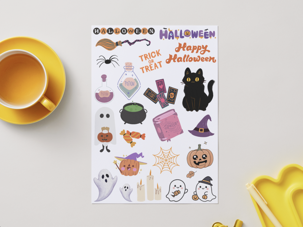 Ce pack contient 5 planches de stickers à imprimer soi-même, chacune inspirée d’un évènement : Saint-Valentin, Halloween, Noël, Anniversaire, Pâques.